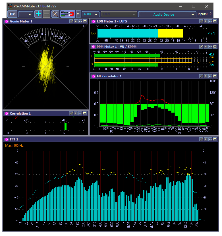 - PPM, LDN-Meter, FFT, Goniometer, Korrelation und Mehrfrequenzkorrelation.